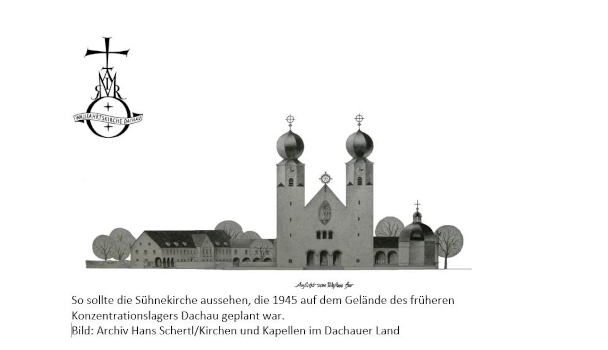 Stadtpfarrer Friedrich Pfanzelt kündigte den Bau schon wenige Tage nach Kriegsende in einer Predigt vor ehemaligen KZ-Häftlingen an. Er sagte: „Ich schwöre bei meiner Priesterehre, dass wir Dachauer nichts wussten von den furchtbaren Verbrechen im K.L. [Diese Aussage ist anzuzweifeln, Anm. der Redaktion, vielleicht nicht im vollen Ausmaß der pseudomedizinischen Versuche und anderer Gräuel]