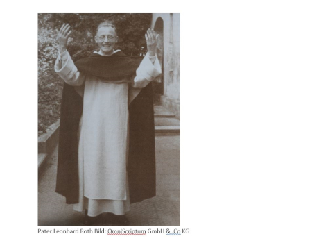 Leonhard Roth, geboren 1904 in Saldenburg im Bayerischen Wald in einer frommen katholischen Familie, besuchte ab 1915 das Missions-Seminar der Benediktinerabtei Schweiklberg (Niederbayern) und dann das Ordensgymnasium der Dominikaner in Vechta (Oldenburg). Nach dem Abitur trat er 1924 dem Orden bei und erhielt den Namen Korbinian. Der Einkleidung und dem Noviziat in Venlo folgten Studien in Walberberg und Düsseldorf. In der Kölner Klosterkirche Hl. Kreuz folgte 1931 die Priesterweihe. Neben der Seelsorge leitete Roth in Köln den Thomaskreis für Jungakademiker und hielt zahlreiche Vorträge und Predigten. 1935 wurde er zum Prior des Studienkonventes Walberberg gewählt. Durch seine Kritik am Nationalsozialismus geriet er zunehmend in Konflikt mit dem NS-System. (6)