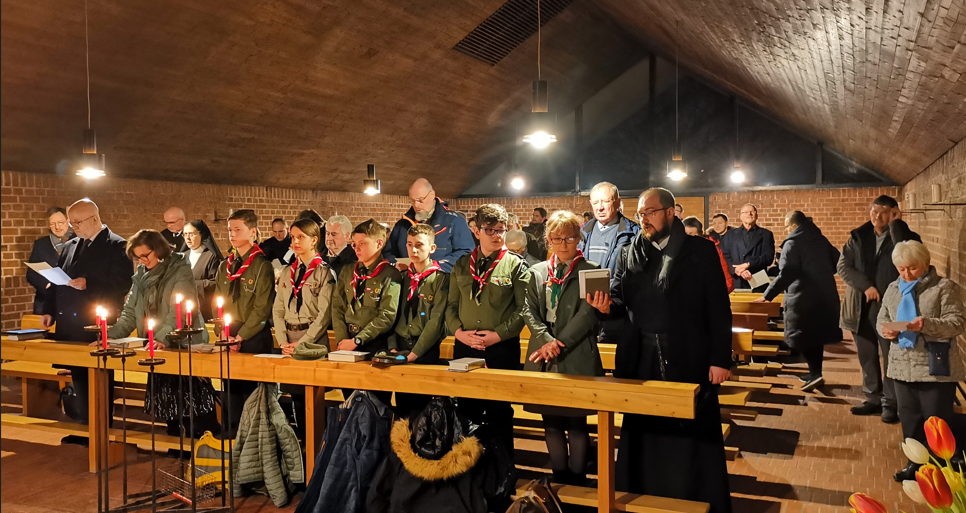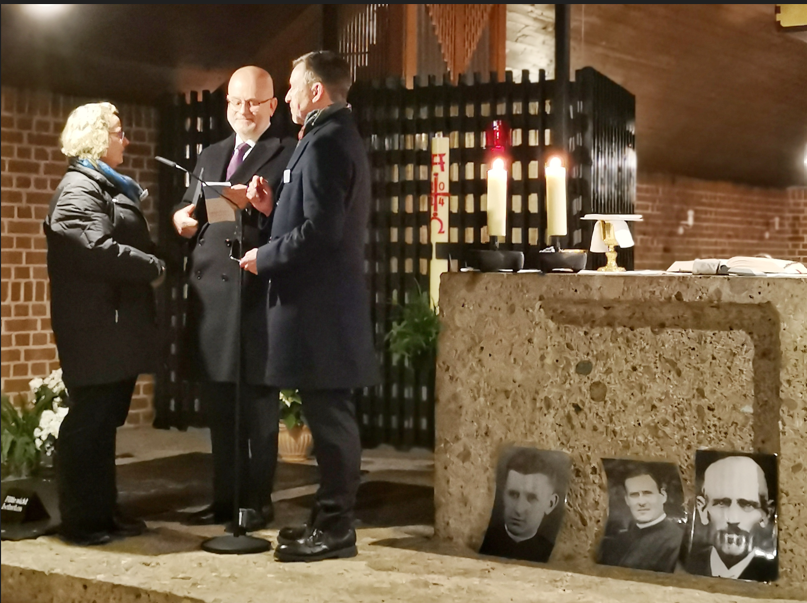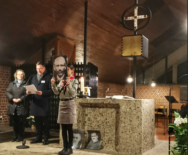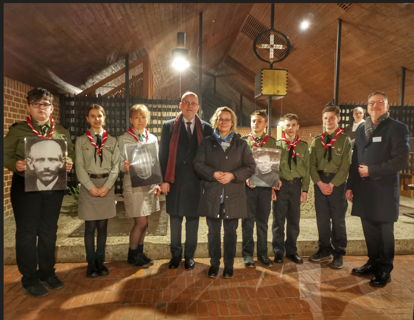 Besonders erfreulich war die Anwesenheit einer Gruppe polnischer Pfadfinder aus München, die das Gedenken durch das Hochhalten von Fotos der Märtyrer während der Lesung von Märtyrer-Biografien unterstützten. Der Gottesdienst wurde von Pfarrvikar Jasper Gülden zelebriert, der in seiner Predigt betonte, dass die Märtyrer nicht widerstandslos waren, sondern einen christlichen Widerstand, den „Widerstand der Liebe“ geleistet haben.